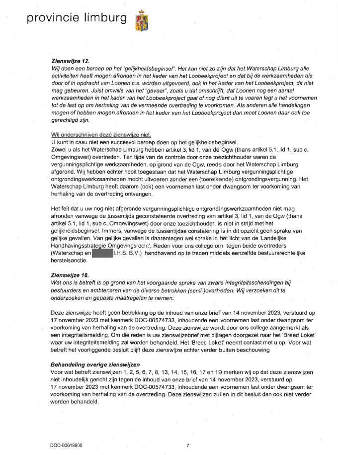 Verder in dit artikel de volledige zienswijze van de familie Loonen, inclusief het verslag van het gesprek met de Provincie d.d. 27 juli 2023. Interessante kost, omdat de familie Loonen zich in een slachtofferrol manoeuvreert. Houd hierbij in gedachte dat de ex-wethouder, de strateeg van de familie, exact weet wanneer er welke vergunningen noodzakelijk zijn. Over integer handelen gesproken.